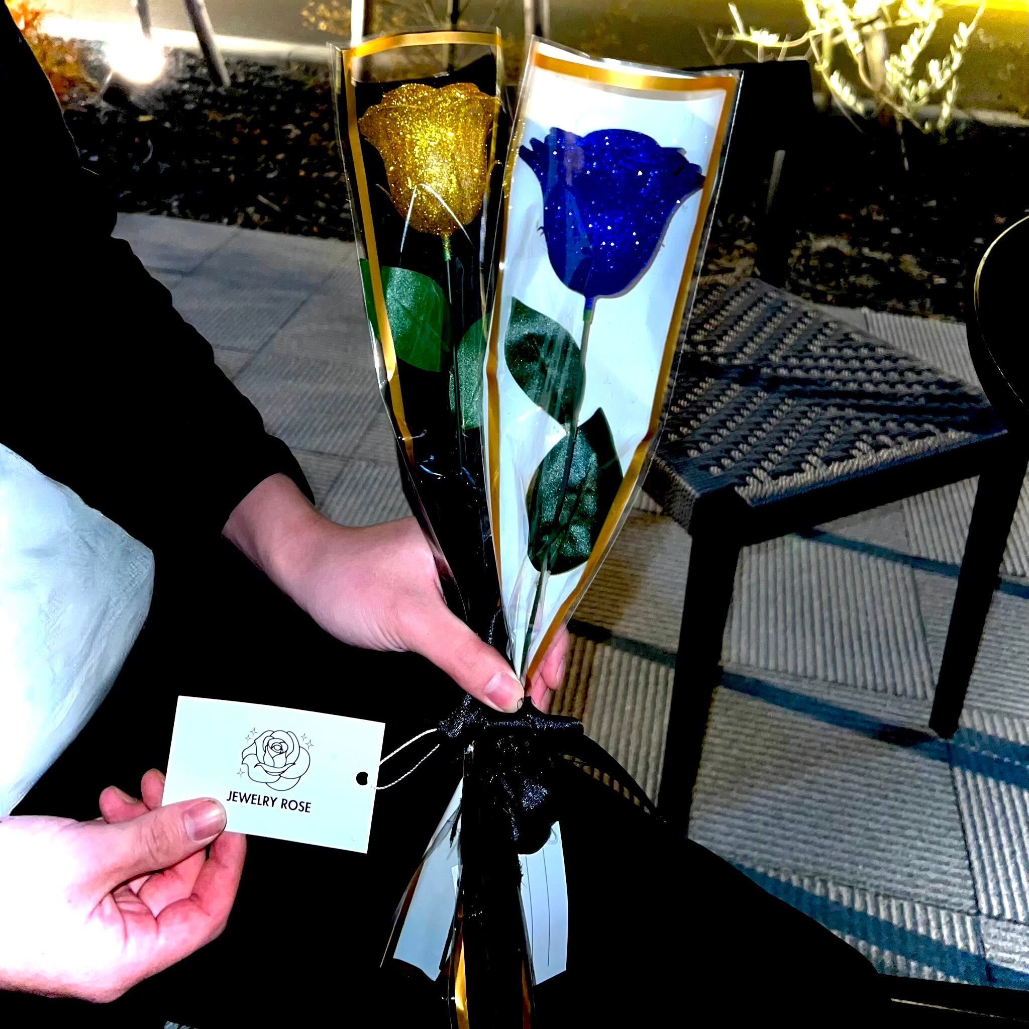 グリッターローズローズを1本使用し、他ではみられない輝きと、誰もが魅了される可愛さ、手軽さが印象的な花束です。